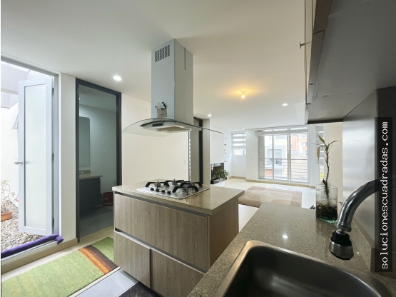 Arriendo Apartaestudio moderno, acogedor, buena iluminación, con terraza, recibe sol de mañana. Cuenta con una amplia habitación con closet y baño, estudio, sala con chimenea, comedor, cocina abierta tipo americano con horno, baño social, zona de ropas y un parqueadero